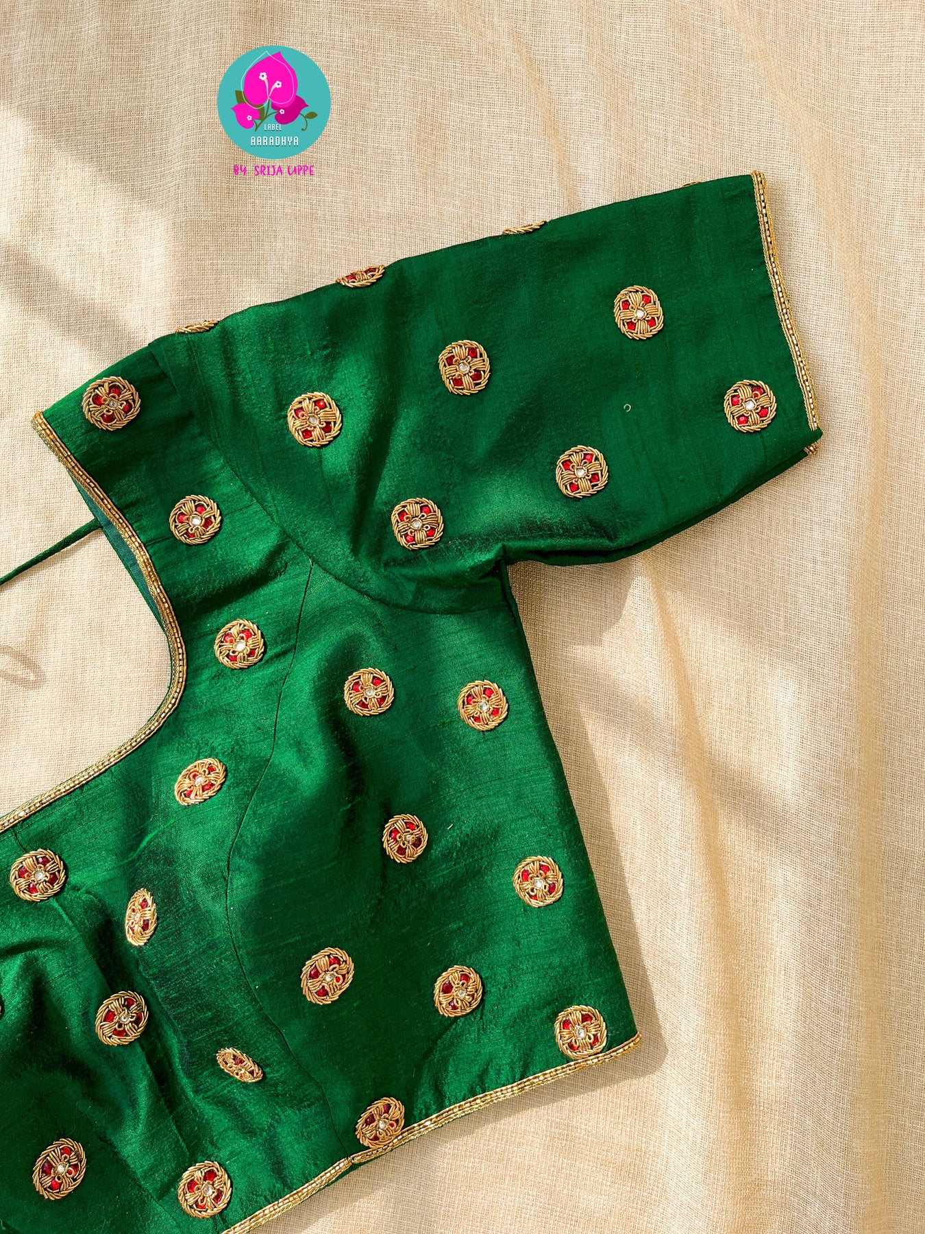 Bottle green Hand Embroidered Pure Raw Silk blouse
