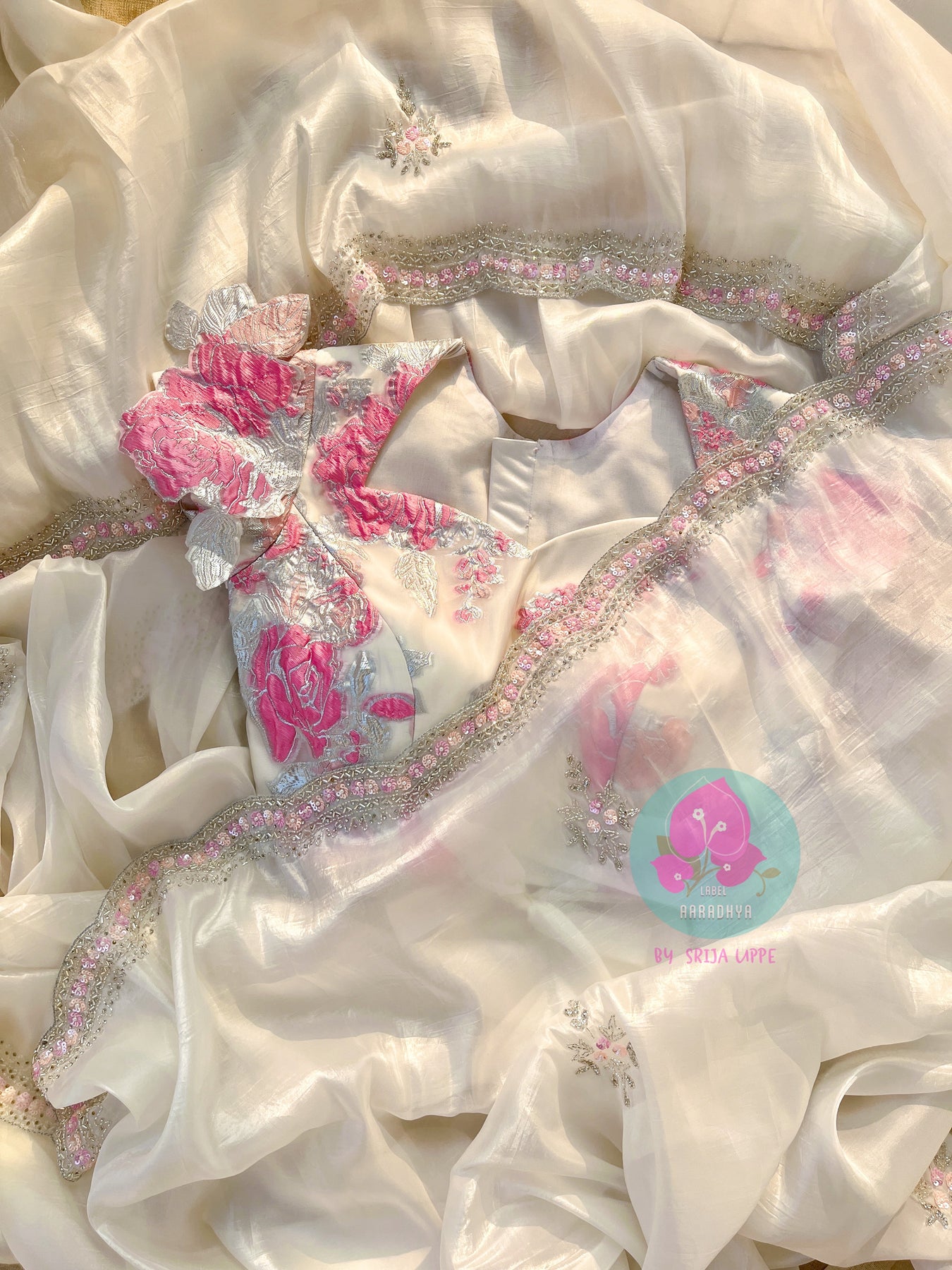 Indulge in the luxurious elegance of our Organza Jacquard Fashion Blouse. The intricate jacquard design on premium organza fabric exudes sophistication and exclusivity. This blouse is the perfect addition to your wardrobe, effortlessly elevating your style with its unique texture and timeless appeal. Experience the art of fashion with this exquisite piece.
