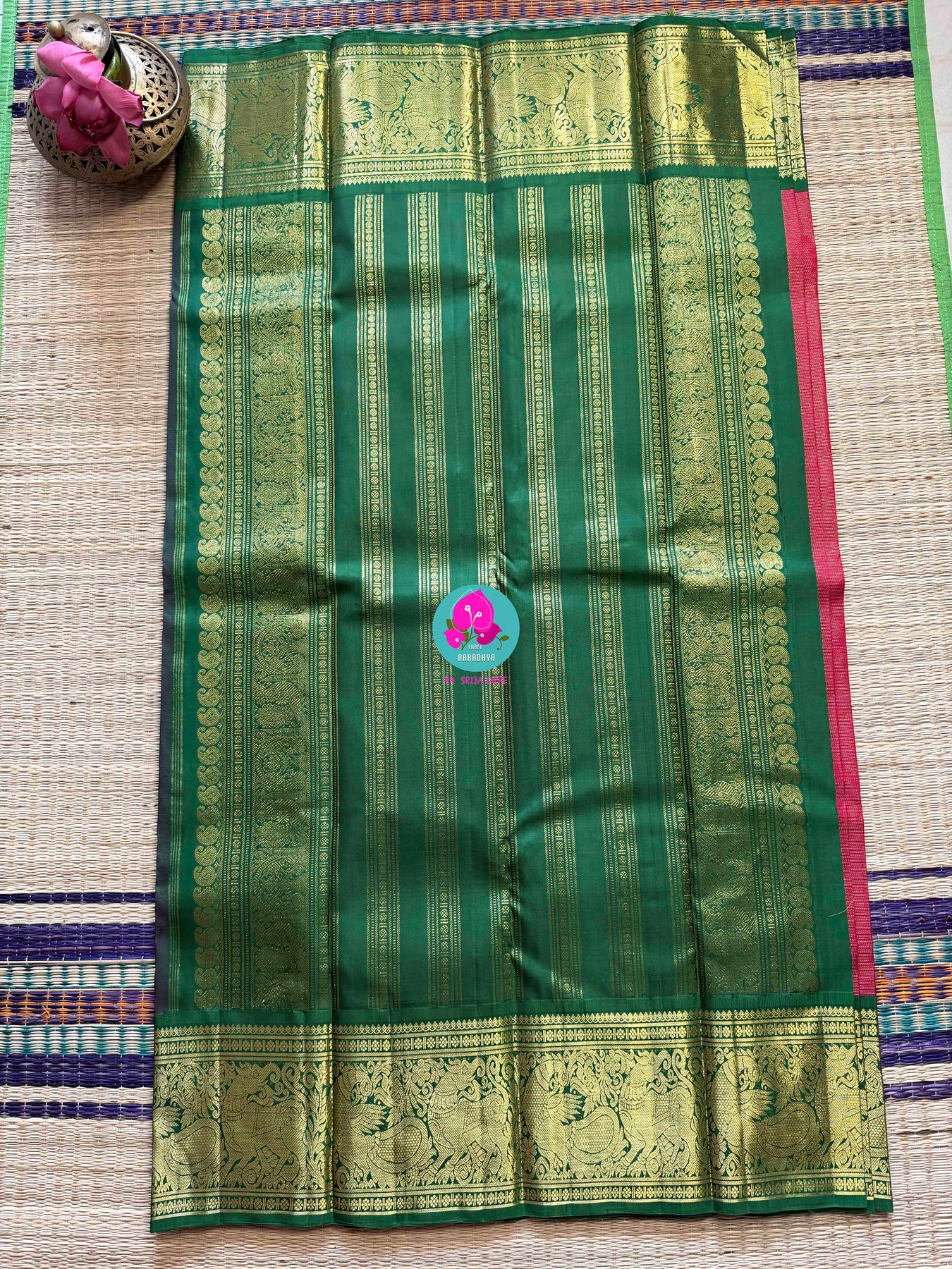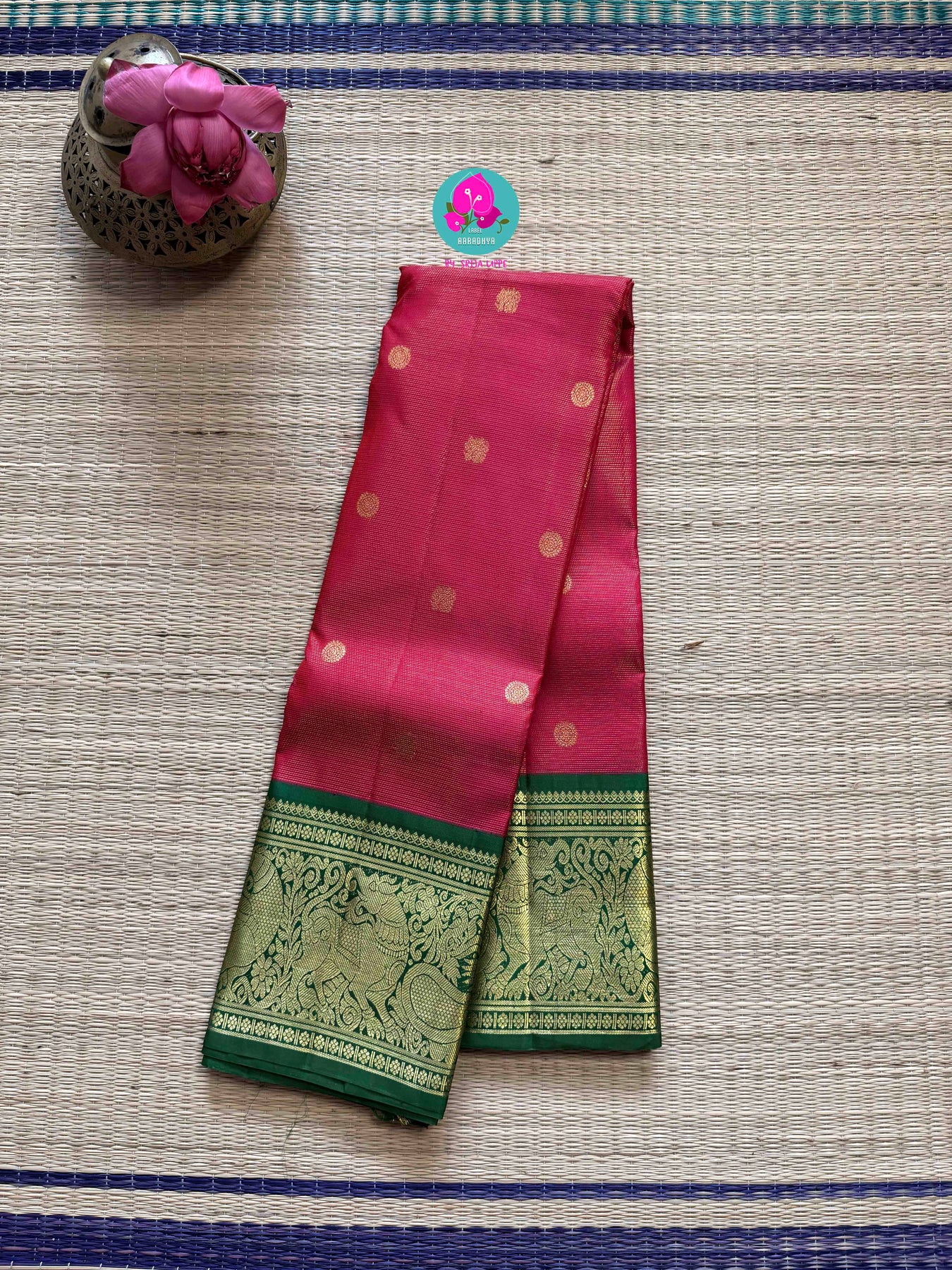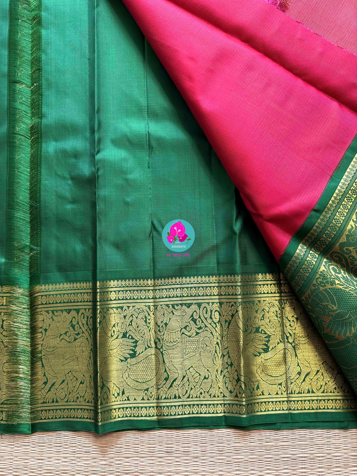 Vaira oosi Kanchipuram handloom saree in vintage Pink and Green