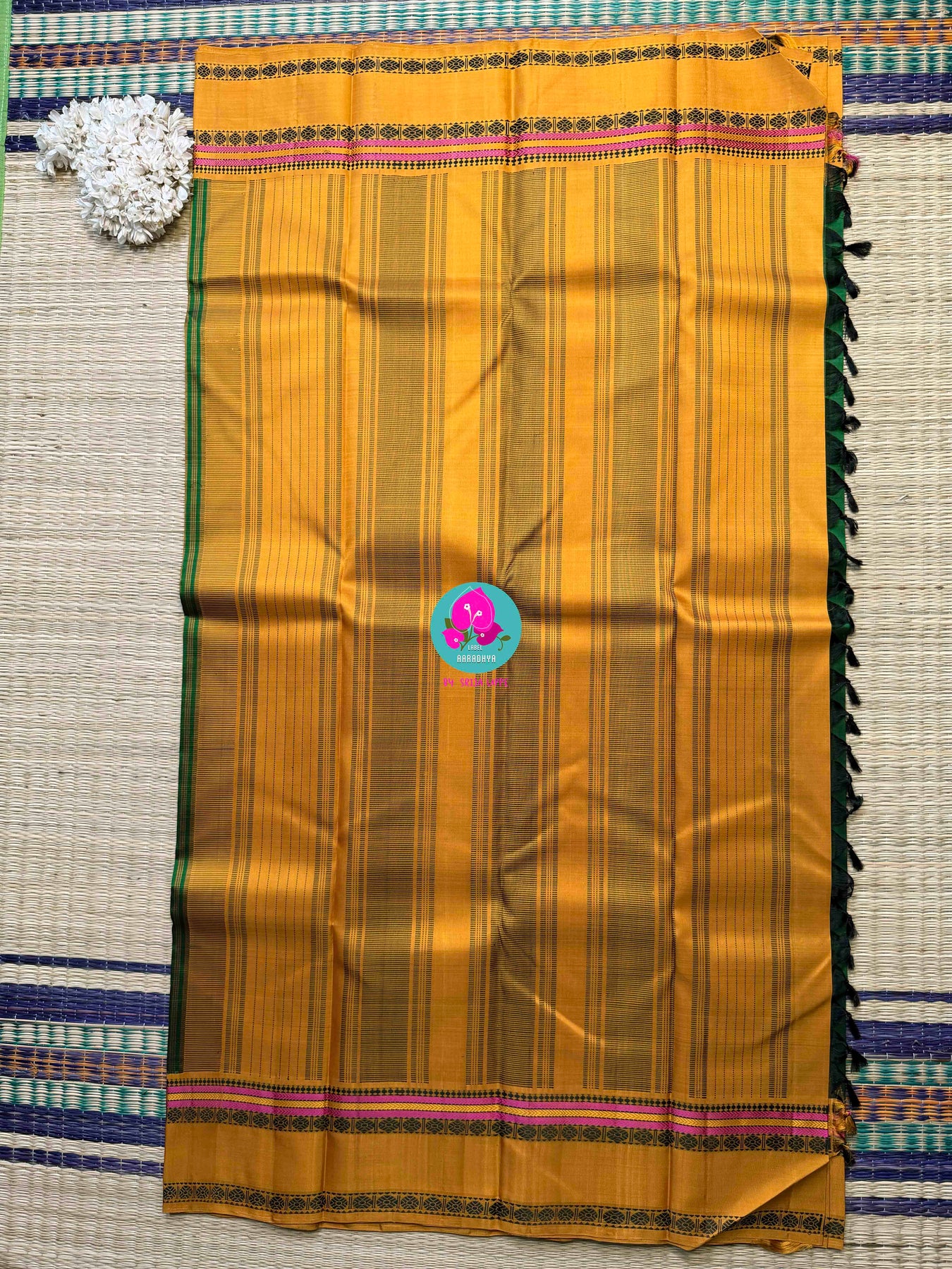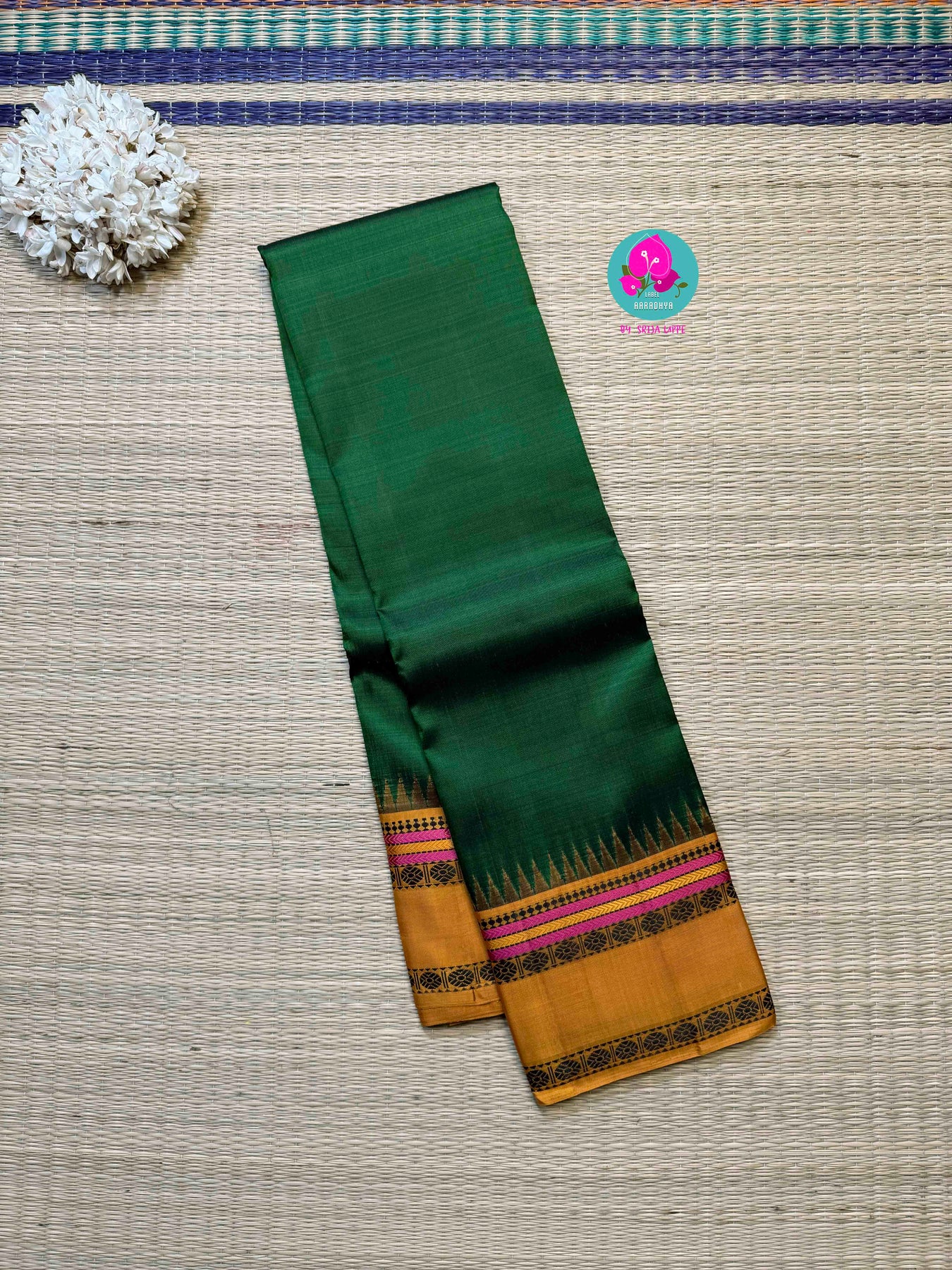 Minimalist Grandeur: Bottle Green Kanjivaram with Striking Mustard Contrast