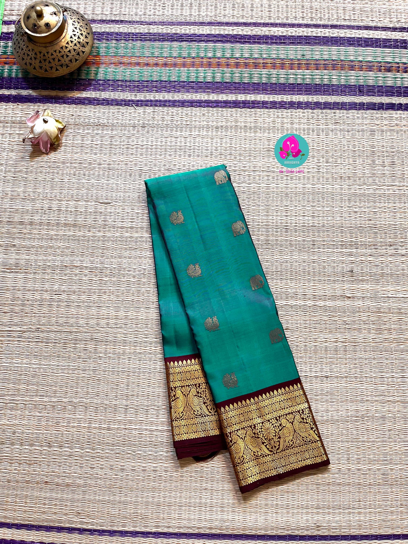 This product features a peacock blue base accented by a brown border, offering a simple yet elegant design with a vintage appeal. Its classic color combination lends sophistication, making it a versatile choice that complements various styles while adding a timeless charm.