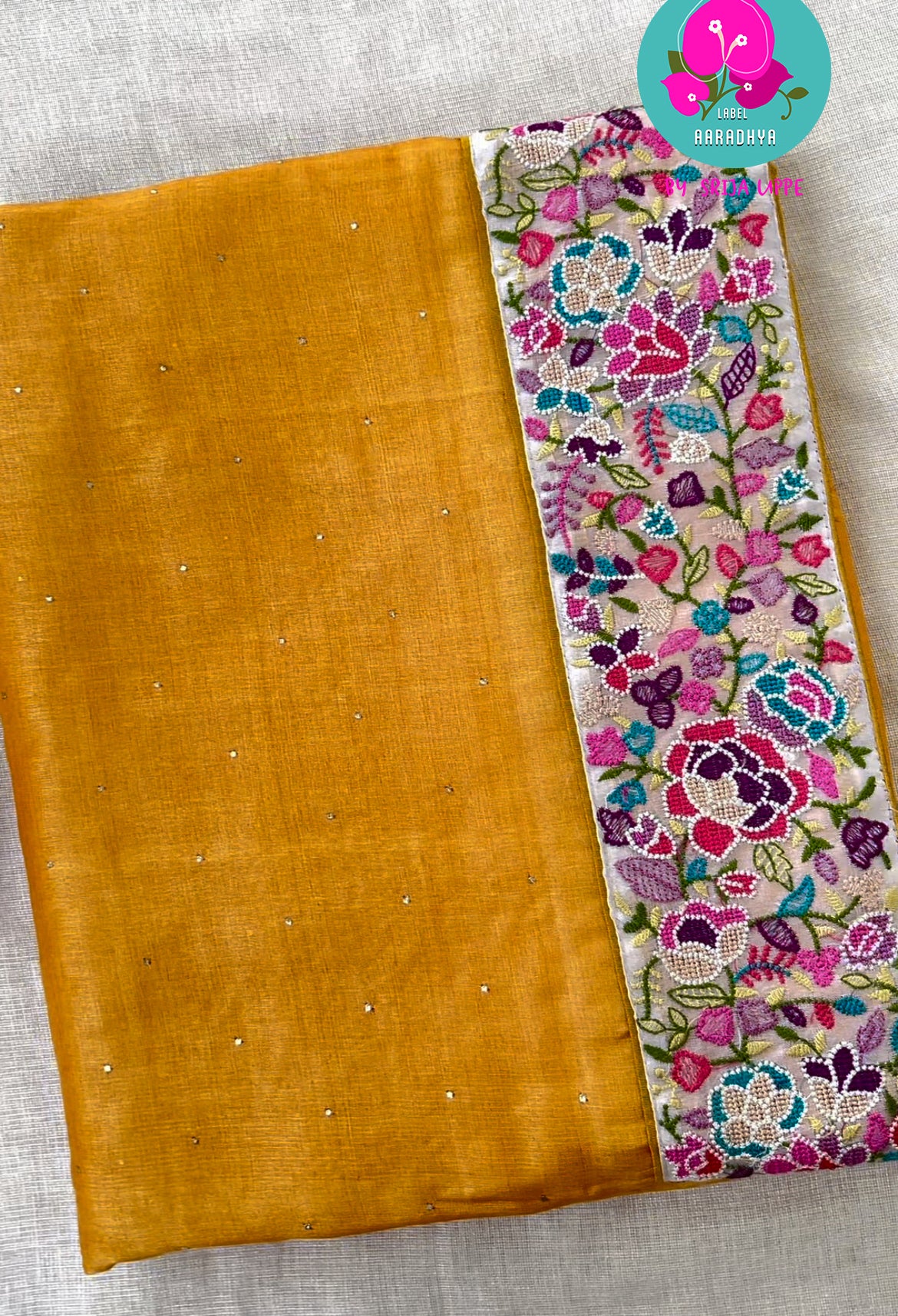 Pure Tussar Mukaish work Yellow saree PTMWYL-M002