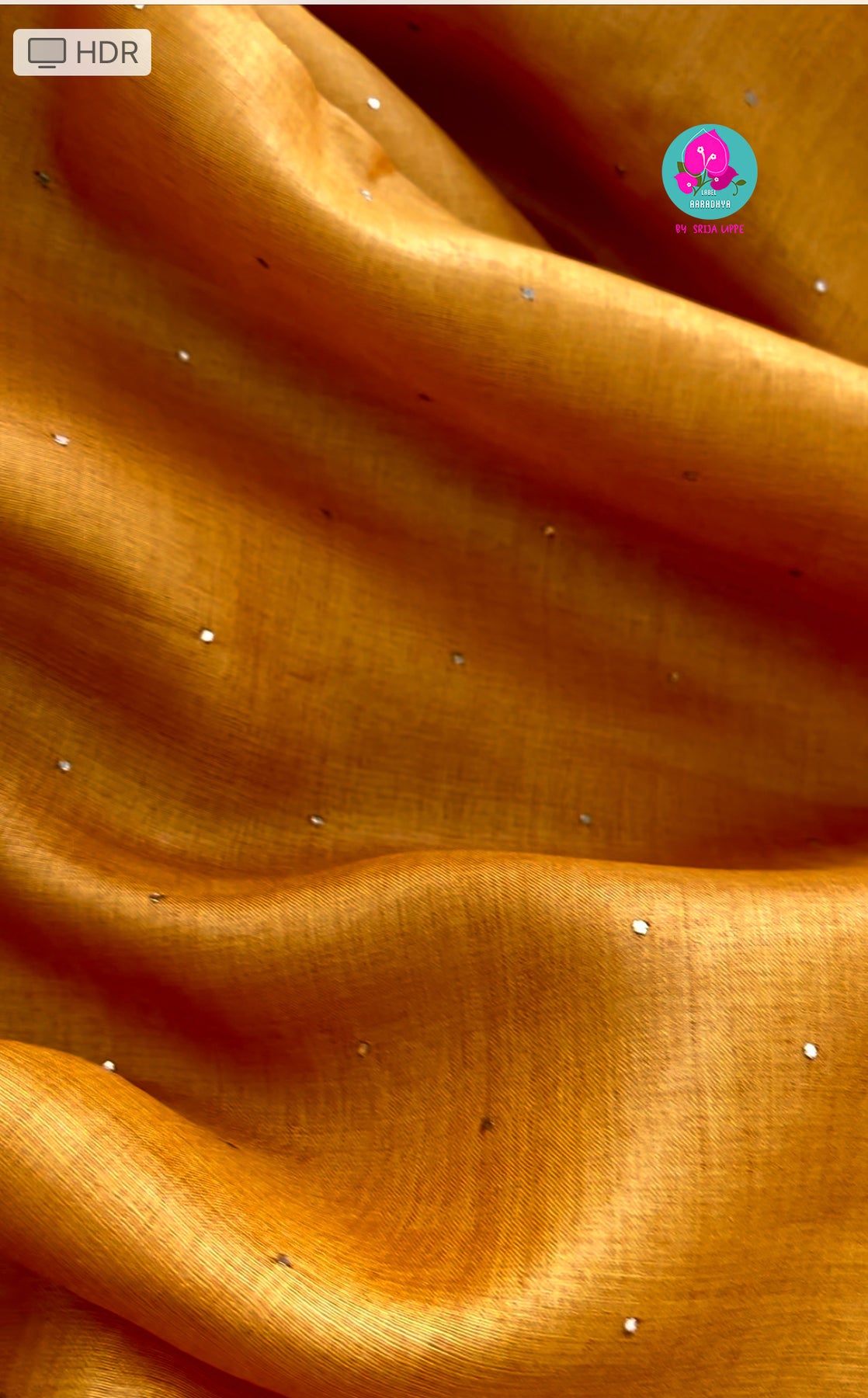 Mukaish is a type of embroidery work that is traditionally done in India. The technique involves using a needle and thread to create small, closely-spaced stitches on the fabric, creating a delicate, shimmering effect. This premium quality tussar saree in yellow with mukaish work and fine thread embroidery looks effortlessly pretty for any occasion. Needless to say that this saree is a perfect haldi outfit.