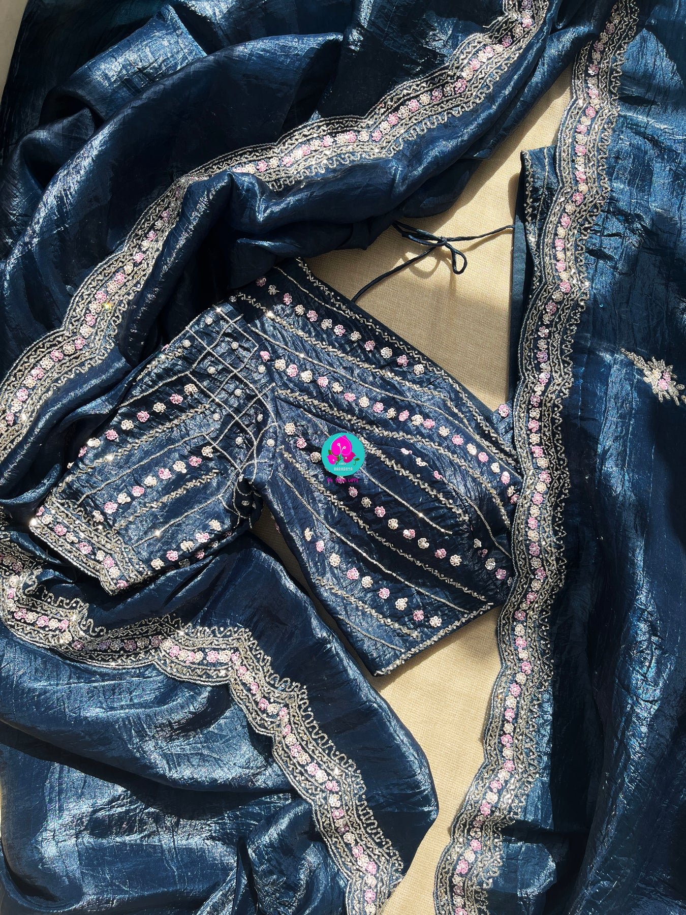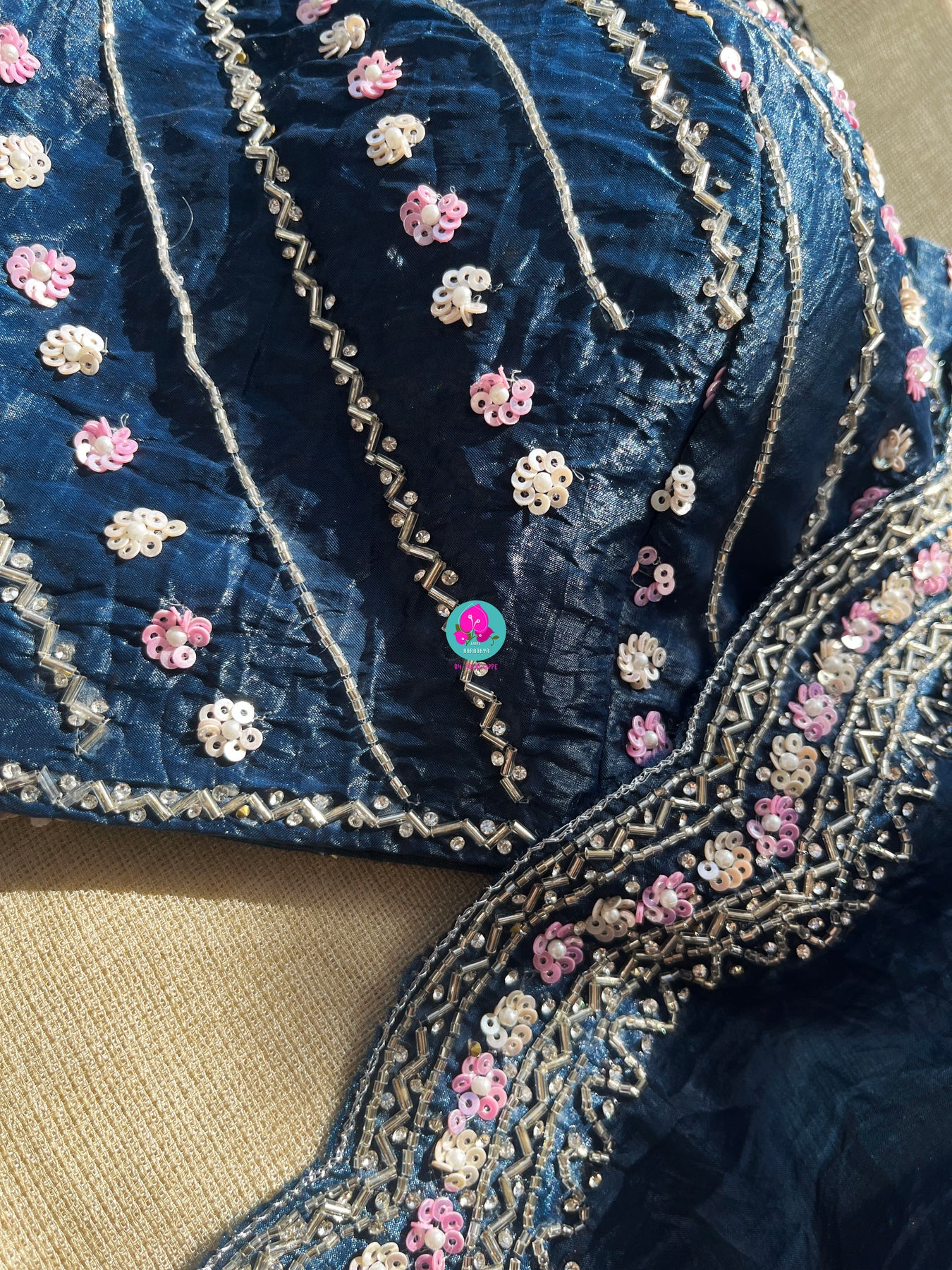 Crushed satin silk saree with sequins embroidery paired with Crushed satin sequins blouse CSSLBL-M01