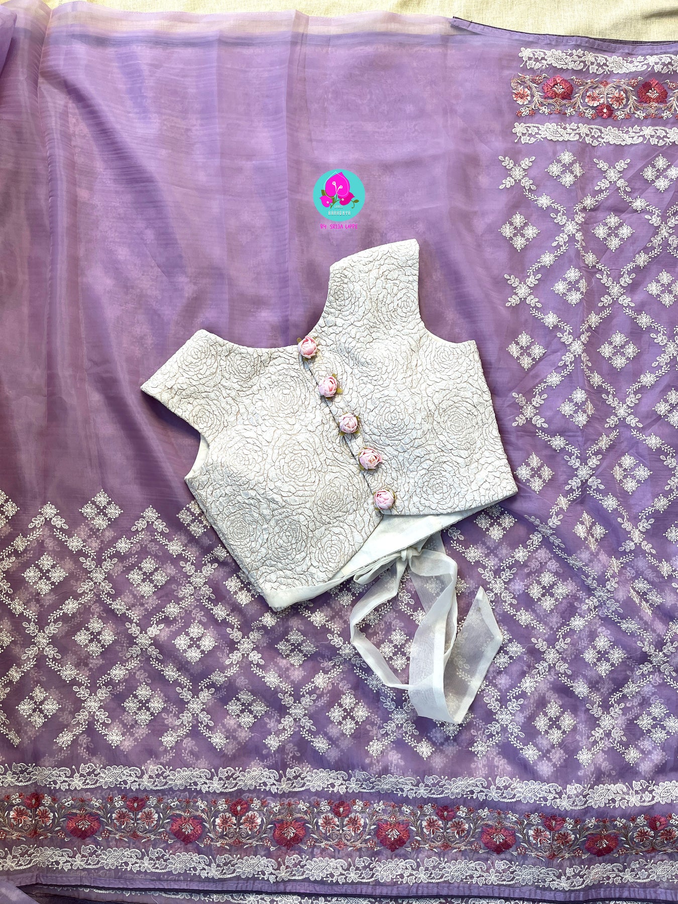 Flowy Soft Satin Organza Saree with Fashion Blouse