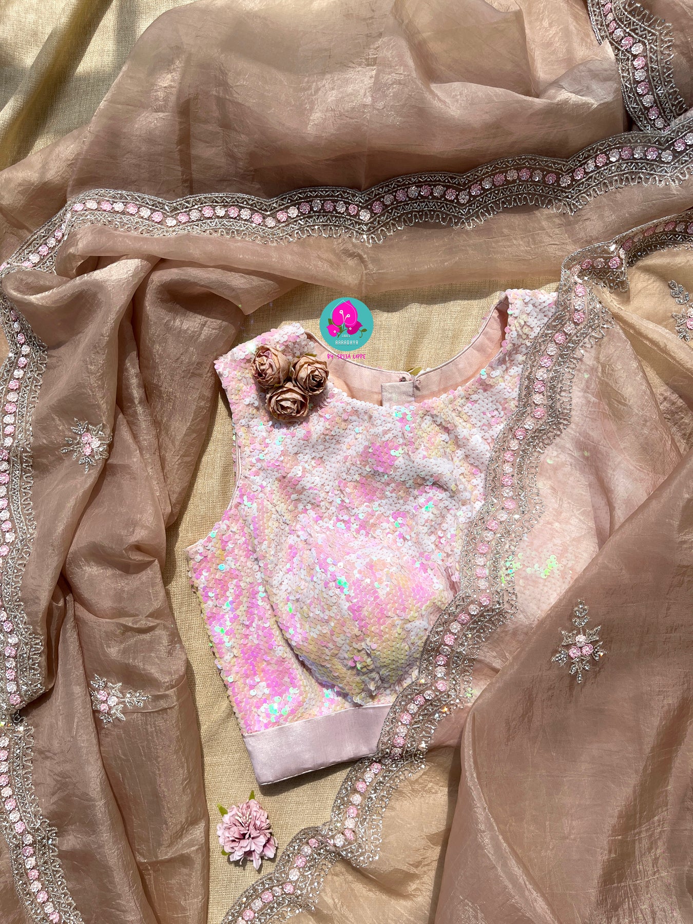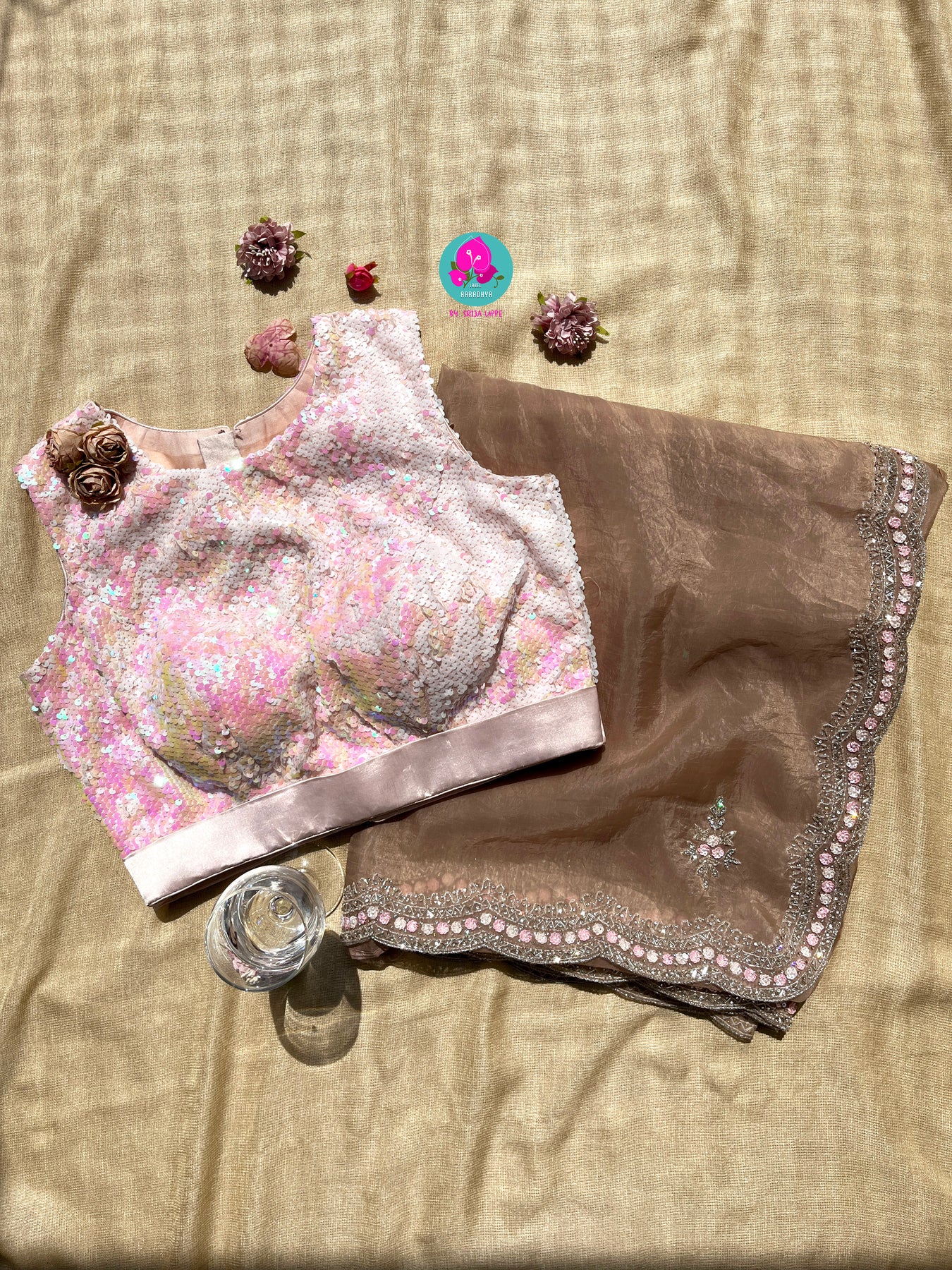 Hand embroidered Organza saree Paired with Sequins blouse HSSLBG-M001