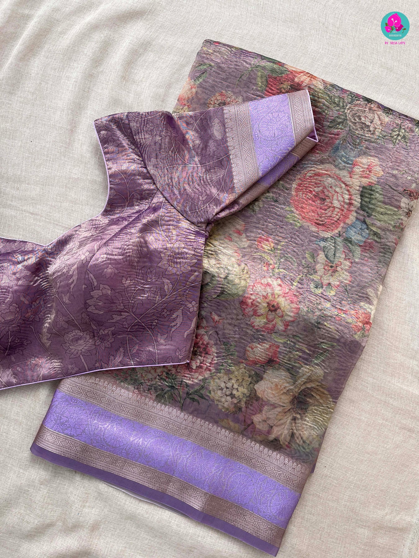 Lavender Floral Crushed Tissue Silk Saree with blouse