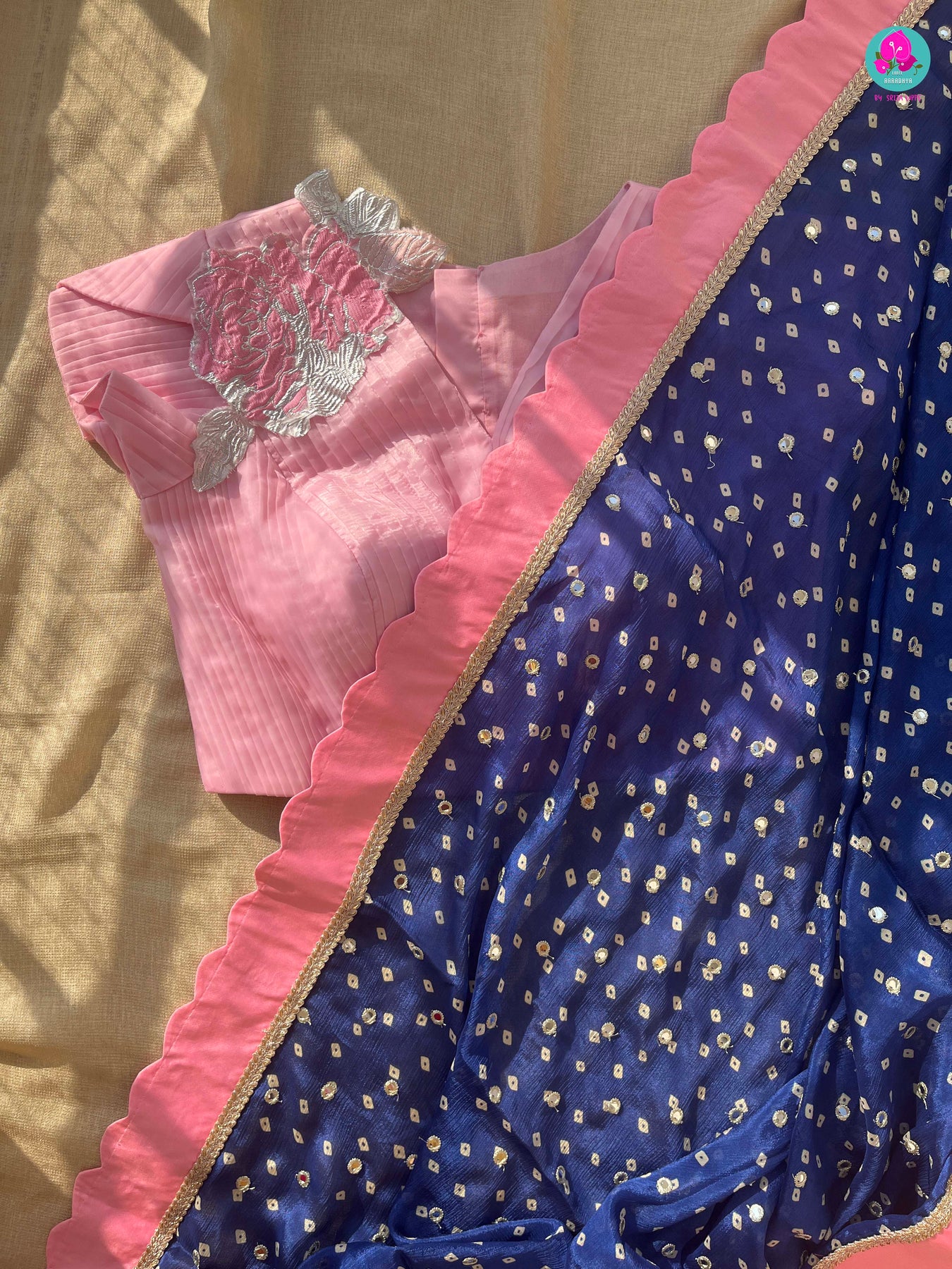 Experience the ultimate confidence and boldness with our Mirror worked chiffon saree! The all over mirrored design adds a touch of glamour and the light weight of the blue chinnon chiffon fabric makes it easy to drape. Embrace the adventure and take on the day with this stunning saree!