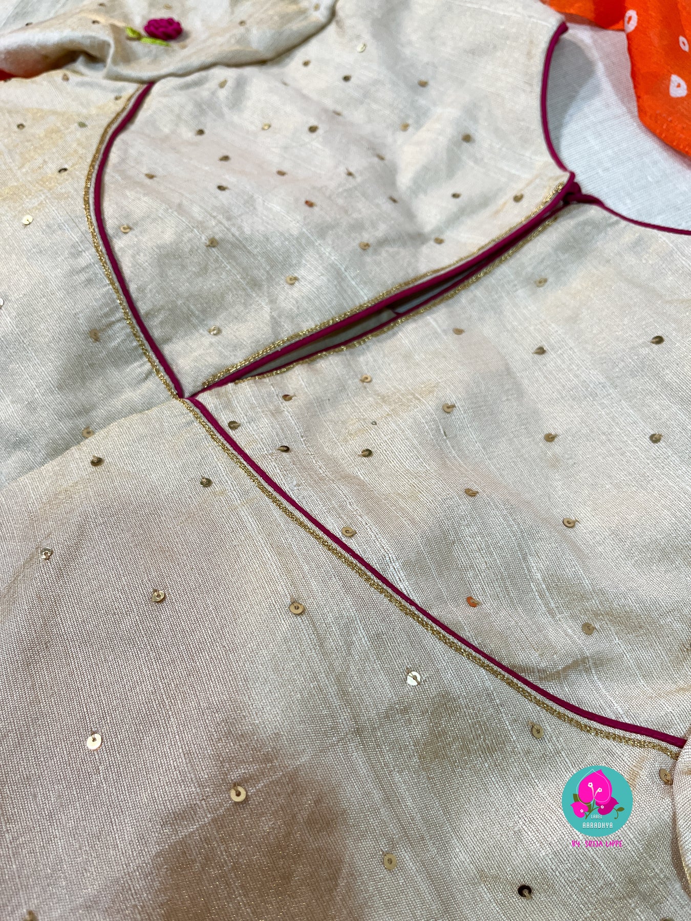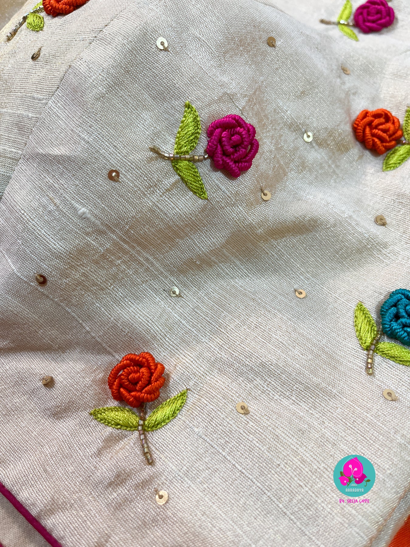 Blouse- Pure Tissue rawsilk mix & match blouse with French knot maggam work.
