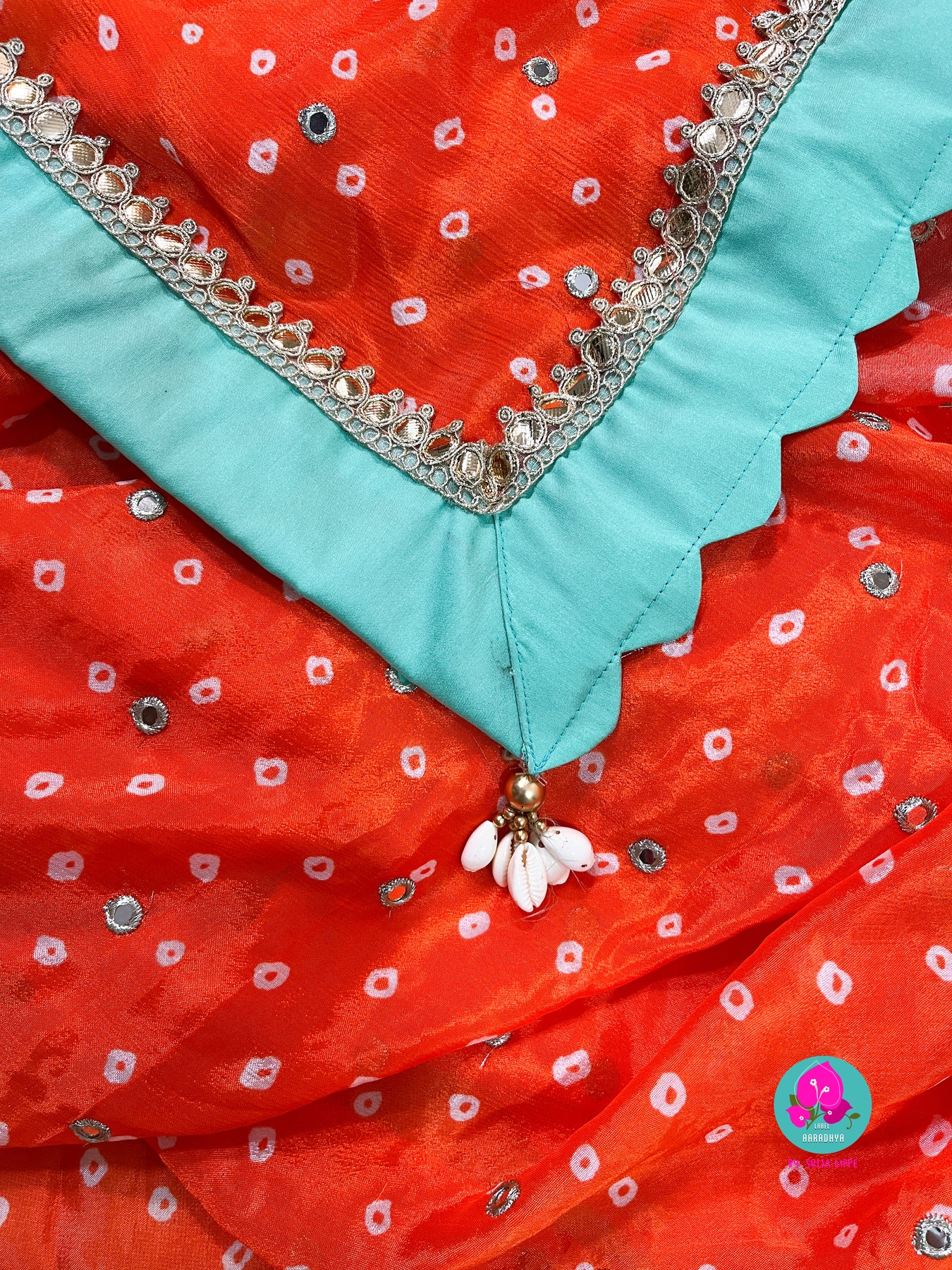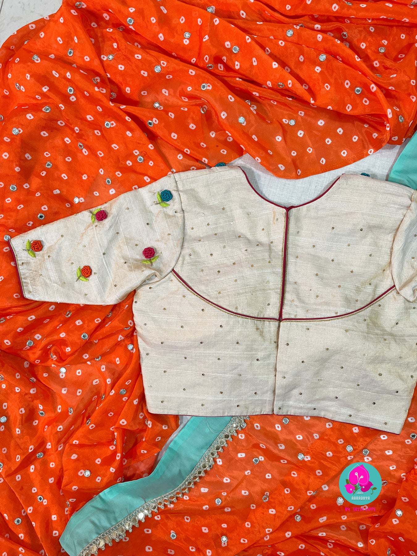 Mirror worked Orange chiffon saree & Blouse CFMEOR-M001