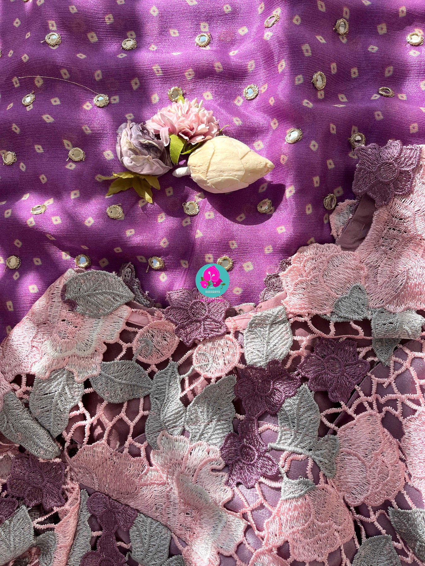 Pure Chinon Chiffon Saree in Mirror Work paired with fashion fabric blouse