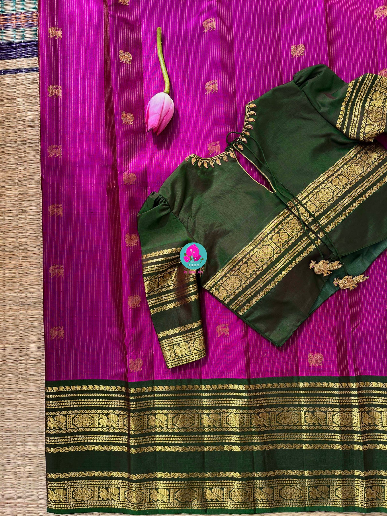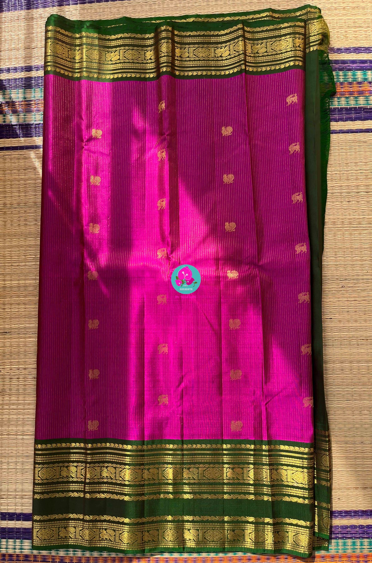 Pure Kanchipattu handloom dark magenta with deep green blouse