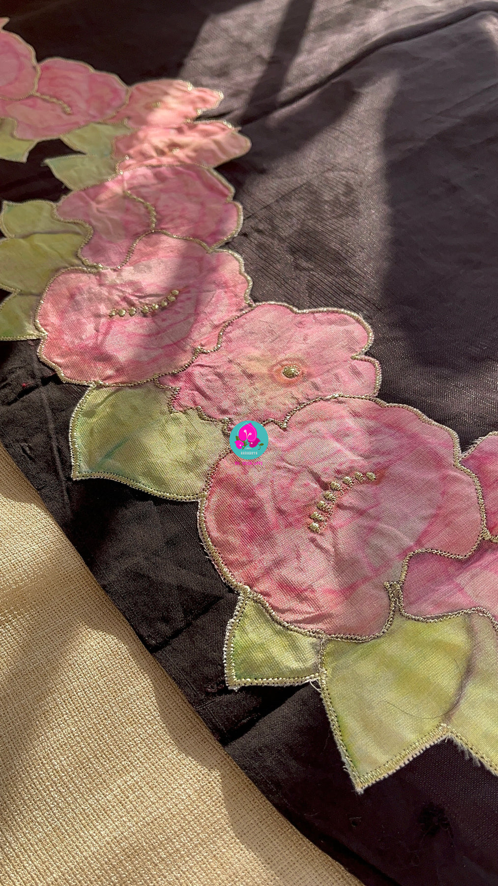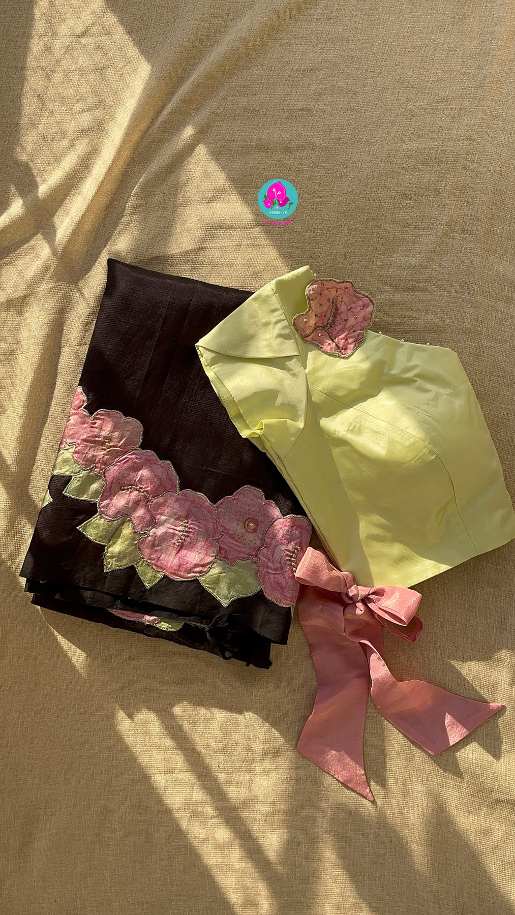Pure Mangalagiri Saree with Applique work and stitched blouse
