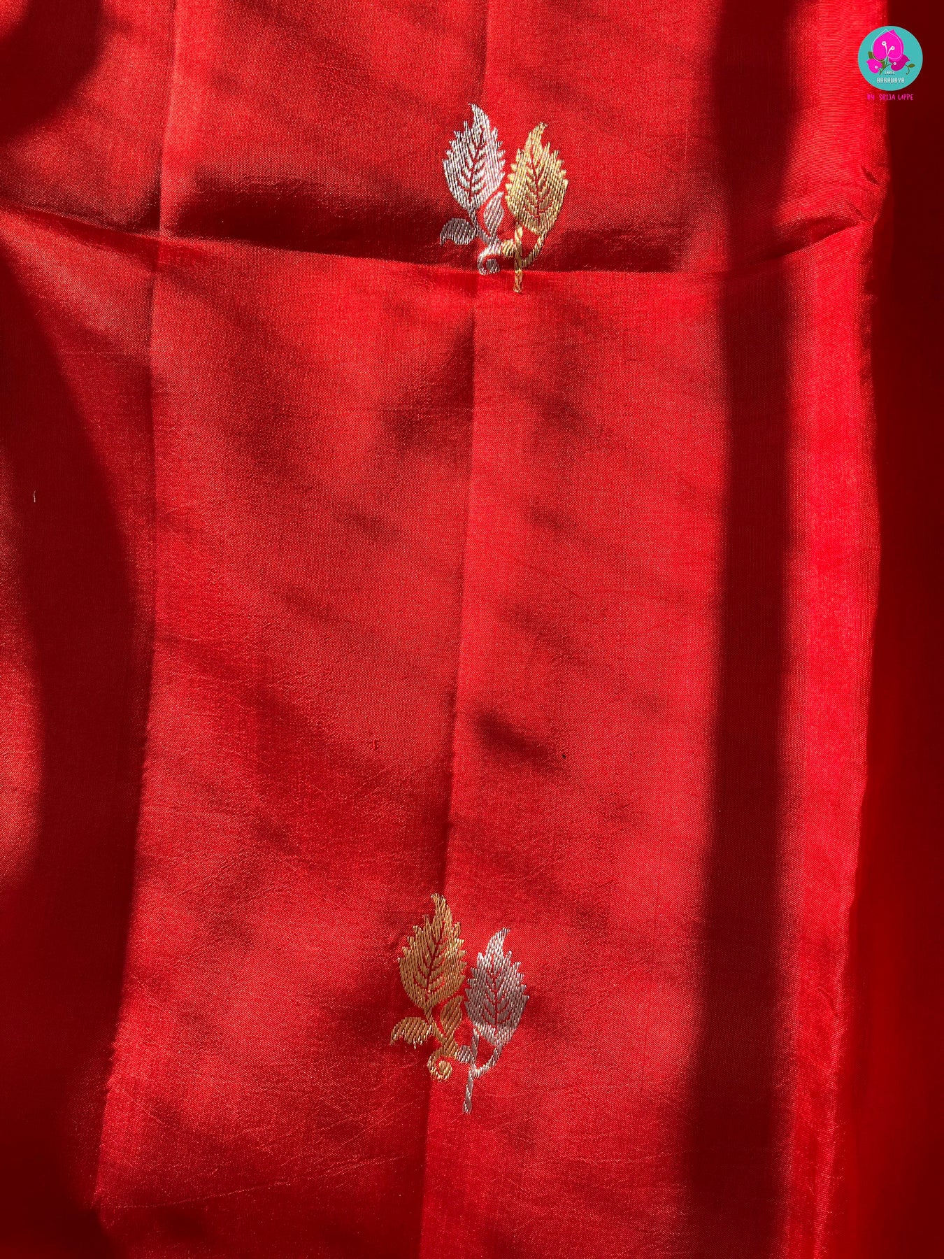 Elevate your grace and style with our Pure Raw Mango Silk Saree! The delicate Scallop style border adds a touch of sophistication to the vibrant color. Paired with a Pure raw silk blouse, this saree is perfect for any occasion. Indulge in luxury and stand out in your next event.