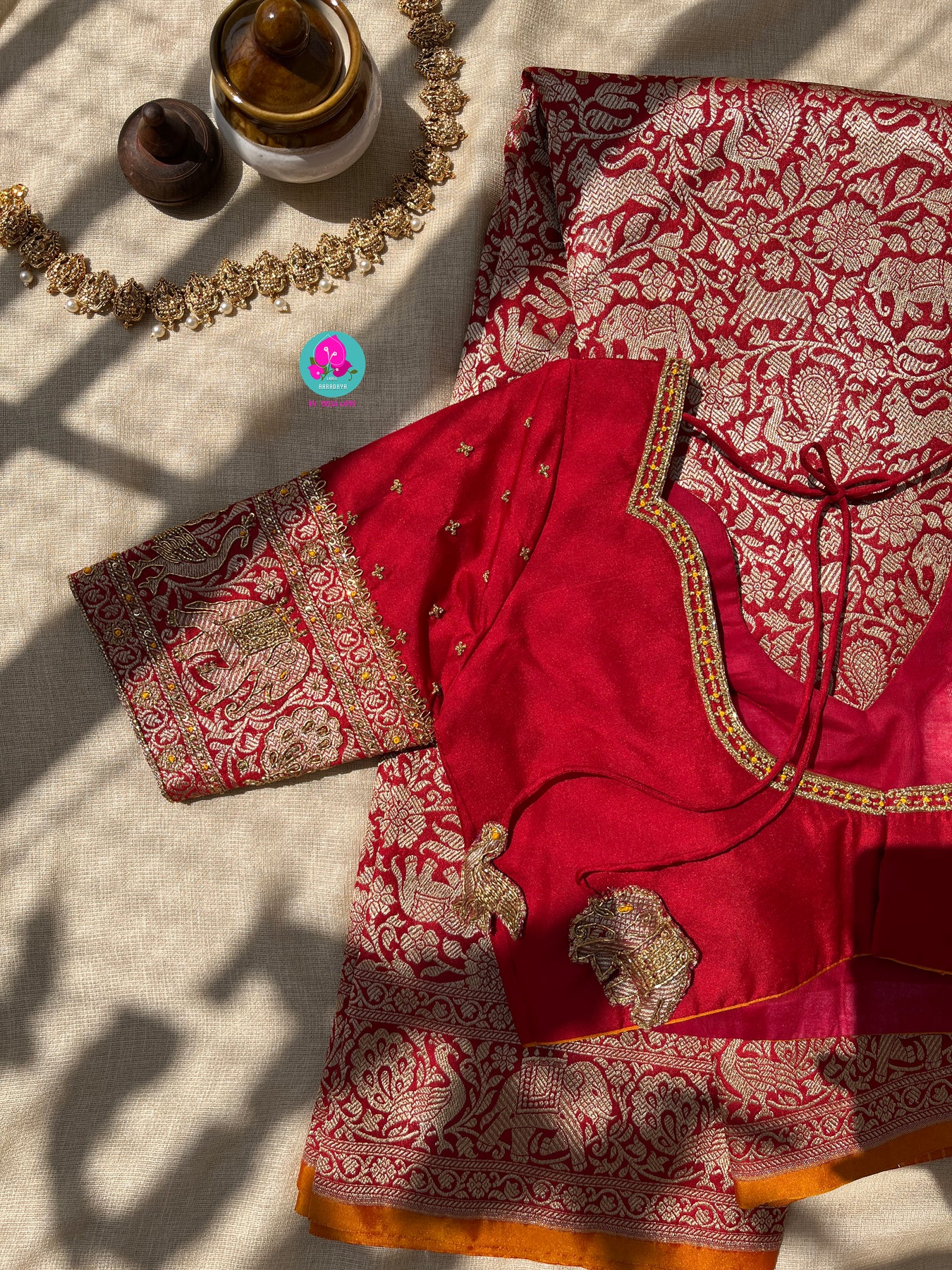 Banarasi Silk Saree with Vintage Shikarga Design with hand embroidered blouse