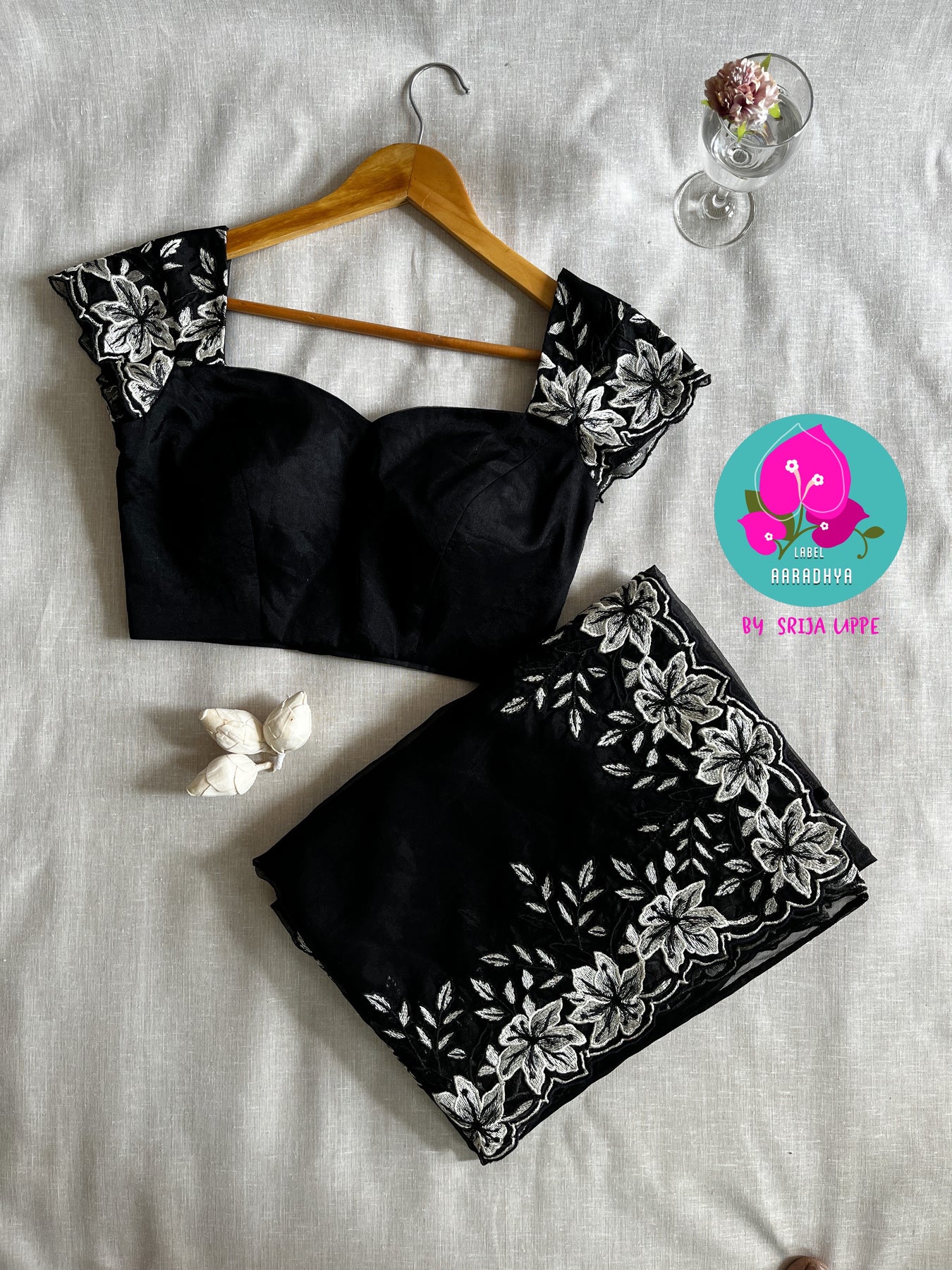 Black soft organza saree with embroidery