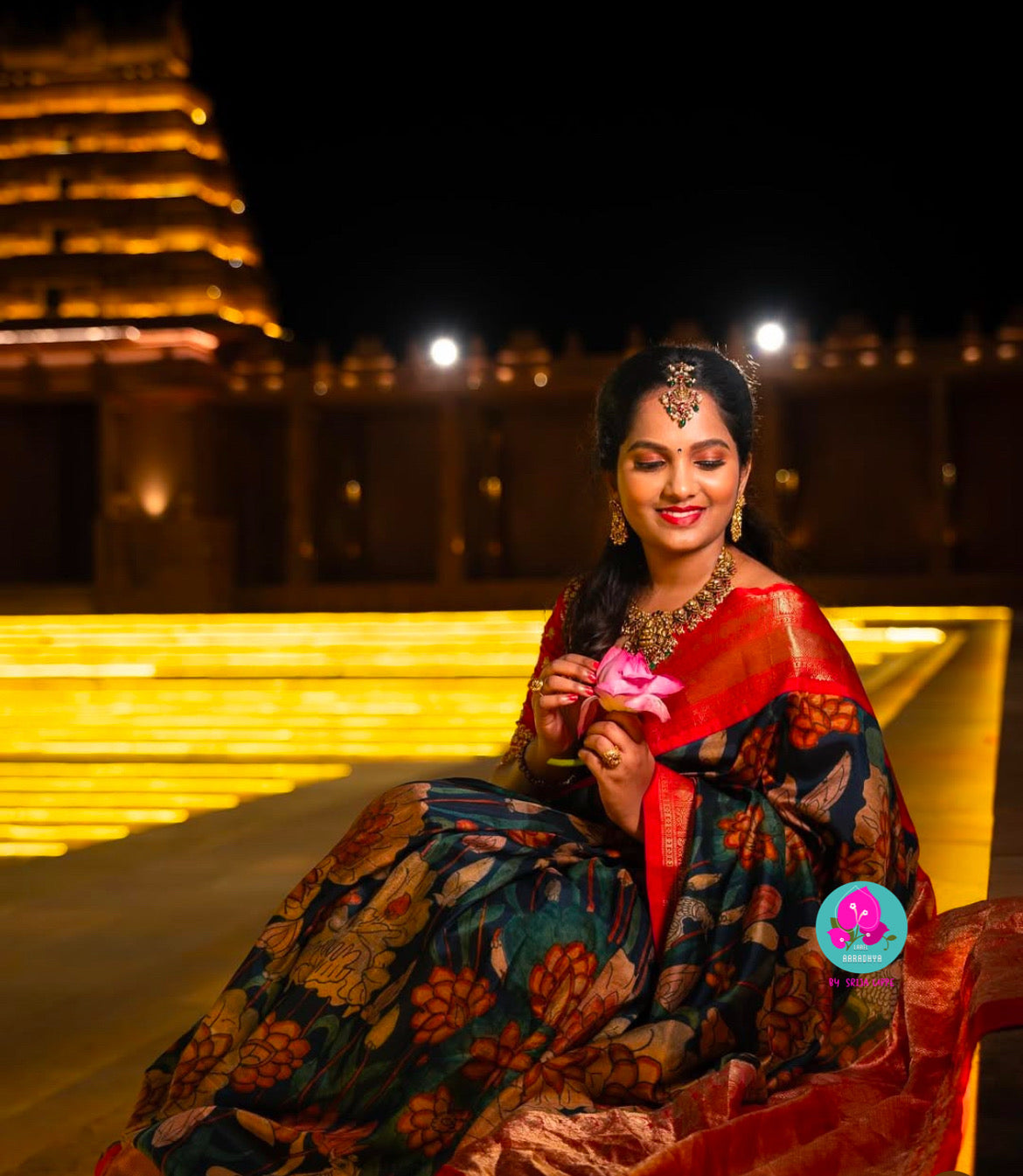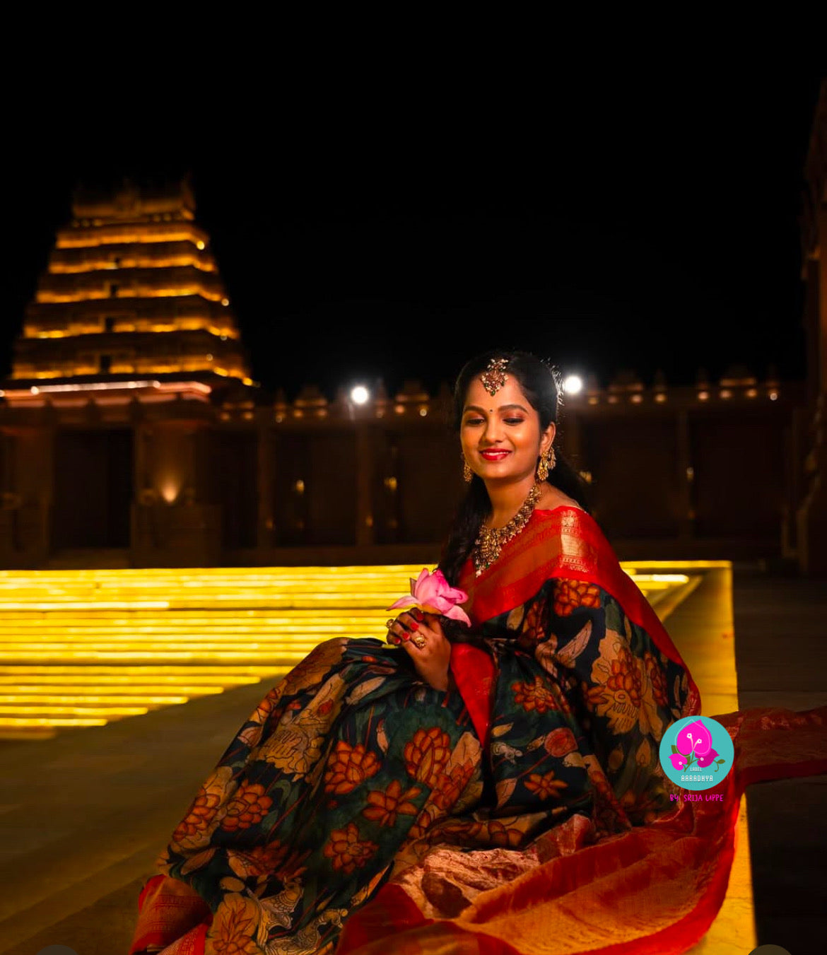 This beautiful pure silk saree with kalamkari print is winning hearts. You cannot go wrong with this softest and breathable silk saree, whatever the occasion.